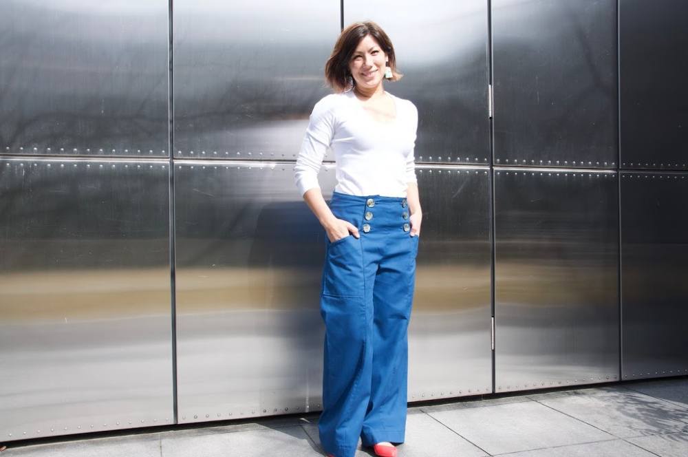 Two of my sewing goals this year were to make pants and to experiment with pattern hacking. I made my first pair of trousers recently with these Terra pants. But a pair of sailor pants with two rows of giant functional buttons has been lurking in my mind for years! So I added them to my ‘make nine’ challenge for this year and finally decided to work out how to make them a reality!
