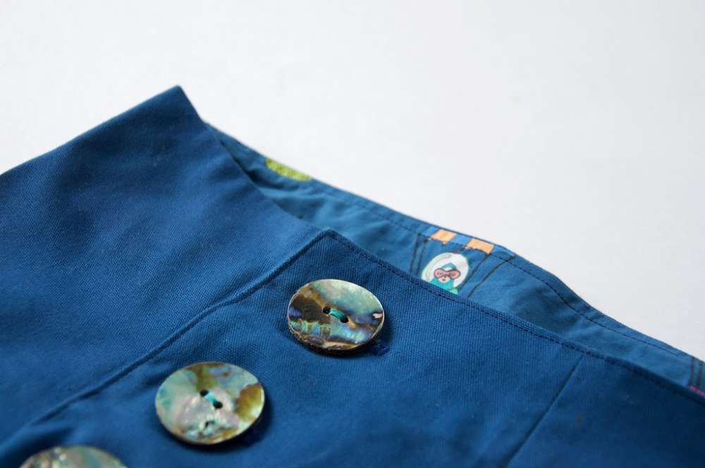 Added these spectacular shell buttons found in my stash and, voila! Sailor pants!
