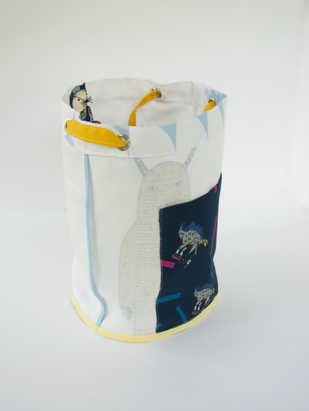 The pocket is made from the Tricycle India print, with one of my favourite Mannine characters – Stella the Stegosaurus on a tricycle!