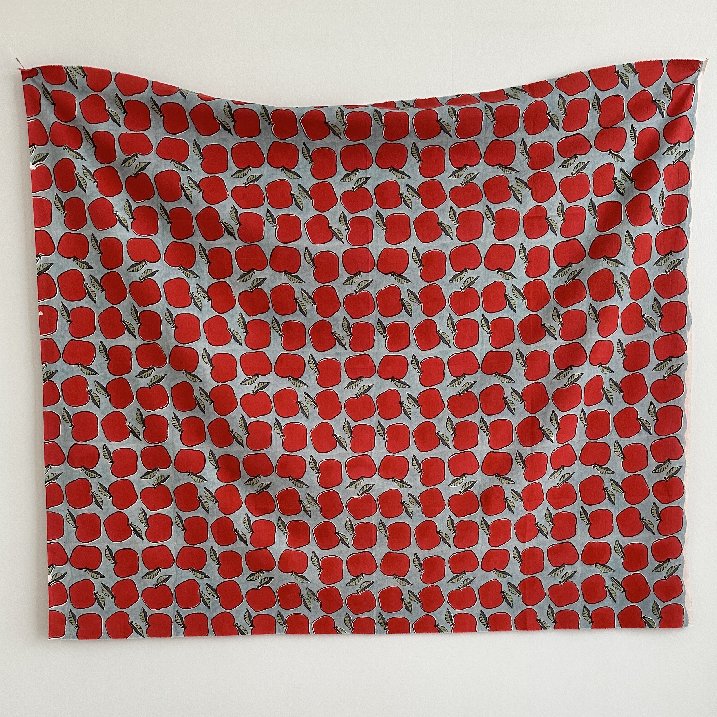 Big, juicy, red apples, handprinted using traditional woodblock methods by indie Japanese design house, admi.