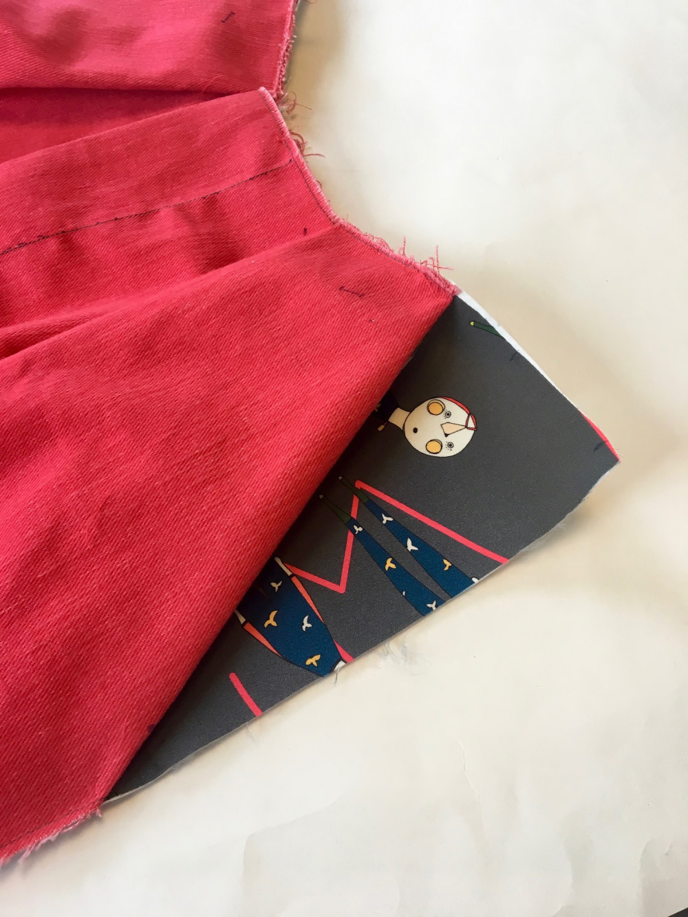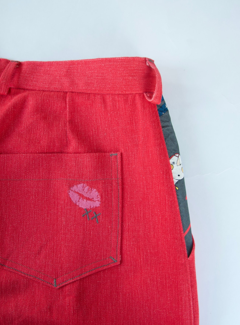 This was super easy to do as the pants corners are a separate pattern piece – so I just swapped out the fabric and interfaced it so that it had enough structure next to the denim.